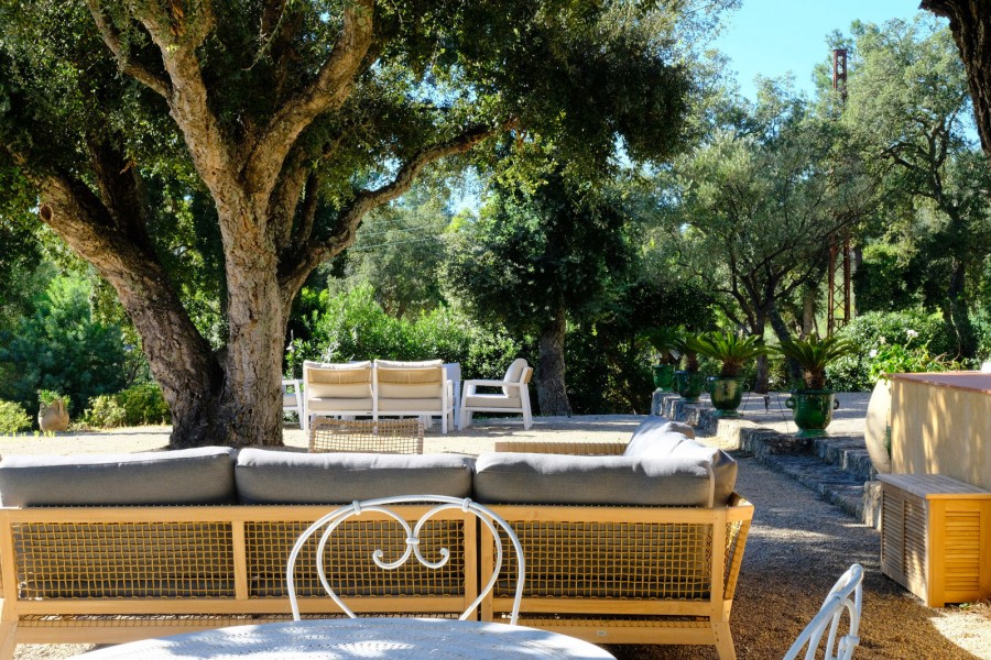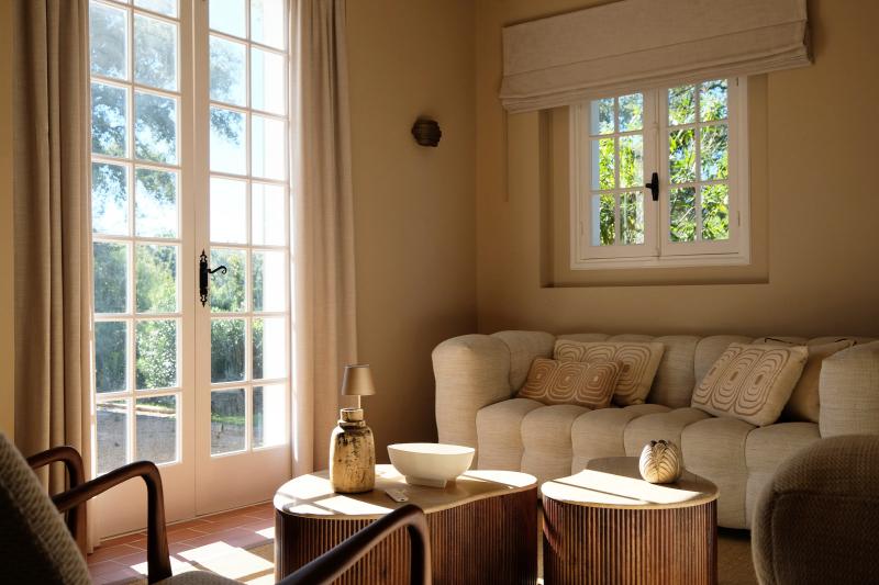 De living is ingericht met hoogwaardige meubelen van oa Bolia en Pols Potten waaronder een fraaie zithoek enkele fauteuils en een moderne design eettafel. Vanuit de living stapt u direct het royale zonneterras en de fraai aangelegde tuin in. In het verlengde van de living vindt u de TV-kamer ingericht met stijlvolle en comfortabele zitmeubelen. De gehele villa is voorzien van airconditioning.
