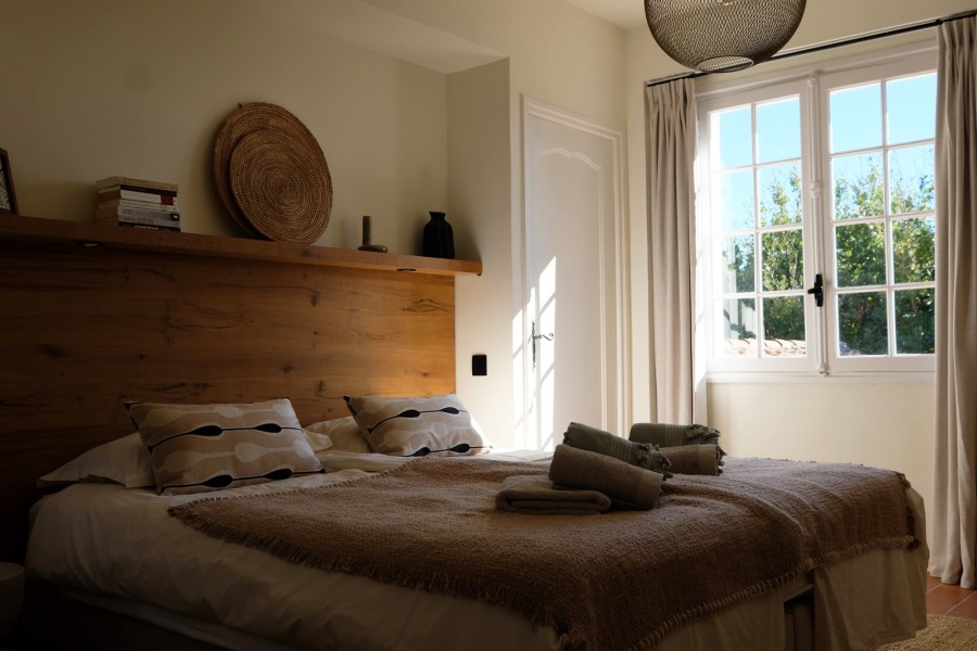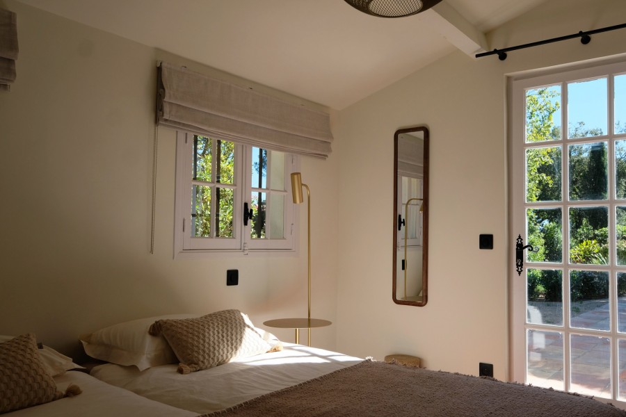 Slaapkamers 2, op de begane grond, biedt toegang tot de tuin en het zwembad. Het bed is tweepersoonsbed (160x200). De badkamer is en-suite met inloopdouche en wastafel.