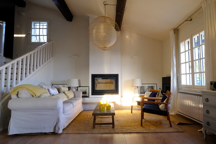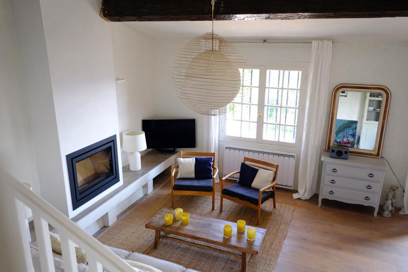 De sfeervolle ruime living van de villa bevindt zich op de eerste verdieping. De living met luxe zitmeubelen heeft een mooie houtkachel haard. Er is een OLED TV met satelliet (NL en BE kanalen), plus Google Chromecast ook is er een DVD speler aanwezig. In de living vindt u naast de grote buffetkast een eettafel met 6 stoelen. Wifi wordt geleverd via snel glasvezel.