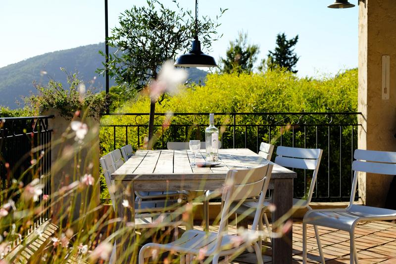 Slaapkamer 2, biedt ook een boxspring tweepersoonsbed (2x90x200), airconditioning en uitzicht op de Golf van St Tropez.