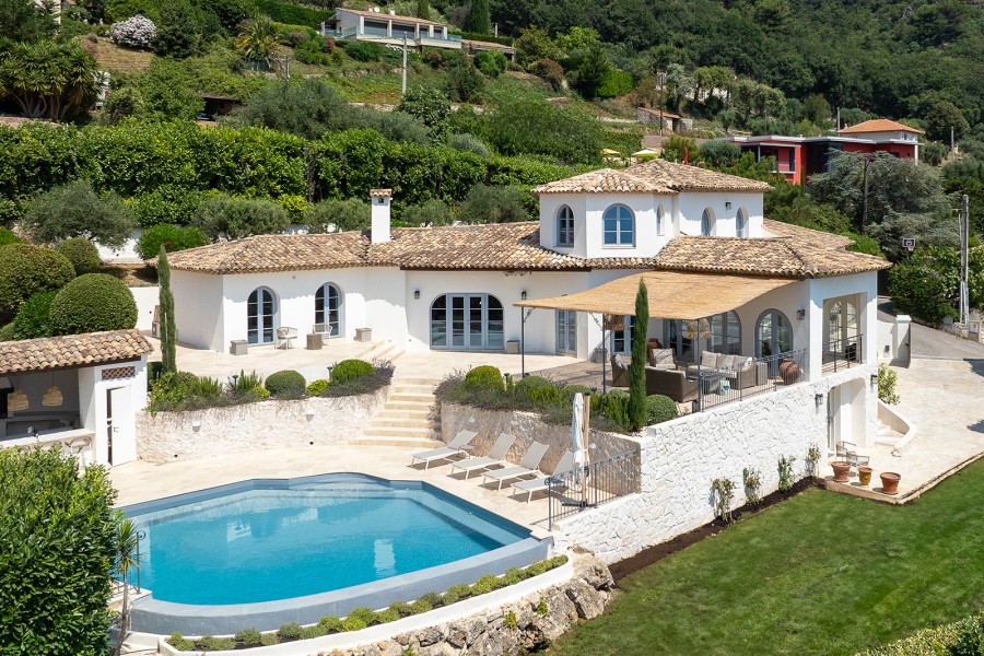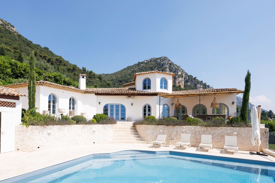 Ontspan in de royale living, waar luxe en eigentijdse meubelen en warme kleurenschema's een fijne Zuid-Franse sfeer creëren.