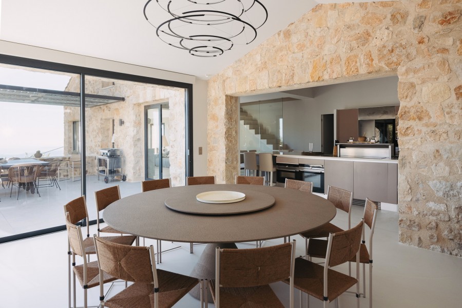 De living is eigentijds en luxe ingericht met meerdere fraaie zitmeubels en kunstvoorwerpen. Een open haard is aanwezig, leuk om hier tijdens het voor- en naseizoen gebruik van te maken. Vanuit de living heeft u een prachtig uitzicht op het landschap wat zich uitstrekt tot aan de Middellandse Zee.
