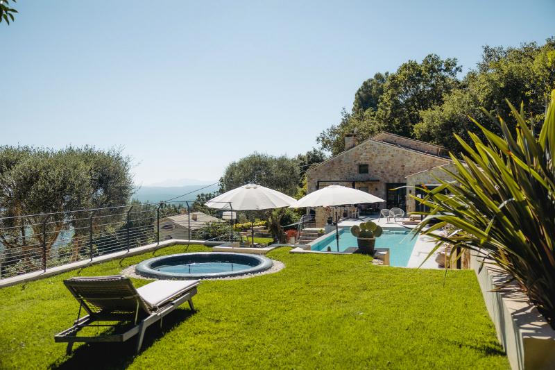 Slaapkamer 2 is voorzien van twee éénpersoonsbedden (2x90x200), welke tegen elkaar aangeschoven kunnen worden, en een en-suite badkamer (bad/douche en toilet). Vanuit deze slaapkamer heeft u ook toegang tot een privé terras en ook deze kamer biedt een fraai zicht op de tuin en Middellandse Zee.
