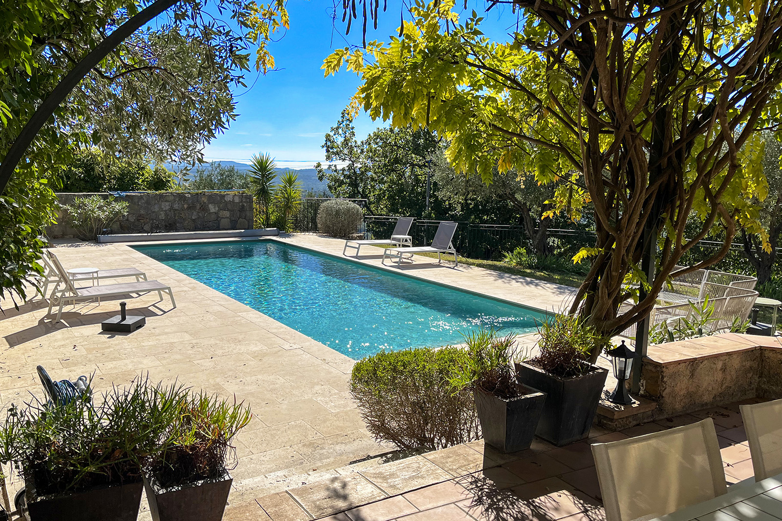 Vrijstaande villa bij het charmante dorp Seillans. Terrein met diverse terrassen. Leuk poolhouse met openhaard.